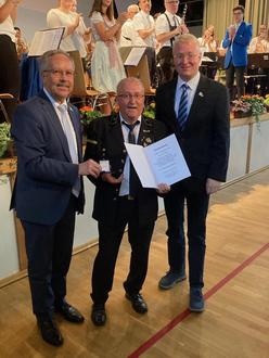 Nach 30 Jahren im Vorstand, zog sich Udo Rosche letztes Jahr in den verdienten Ruhestand zurück. Für sein bemerkenswertes Engagement verlieh im Bürgermeister Hans-Joachim Neumeyer deshalb beim traditionellen Frühschoppen an Kirw Montag in Hülzweiler den Silbertaler der Gemeinde Schwalbach.