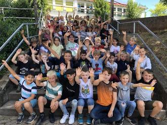 Stellvertretend für die drei Grundschulen in der Gemeinde Schwalbach heißen Schülerinnen und Schüler der Grundschule Hülzweiler -Laurentiusschule- alle „neuen“ Erstklässler zum ersten Schultag am 05.09.2022 herzlich willkommen.