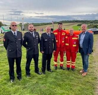 Bürgermeister Hans-Joachim Neumeyerbeglückwünschten stellvertretend für alle Helferinnen und Helfer aus der Gemeinde die anwesenden Mitglieder der Freiwilligen Feuerwehr und der DLRG.