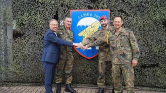 Nach knapp 34 Dienstjahren als Soldat übergab Oberstabsfeldwebel Malik Derdouk vergangene Woche in seiner Funktion als Kompaniefeldwebel der Luftlandepionierkompanie 260 Saarlouis (Patenkompanie der Gemeinde Schwalbach) seinen Aufgabenbereich an den neuen Spieß, Stabsfeldwebel Benjamin Wirth.