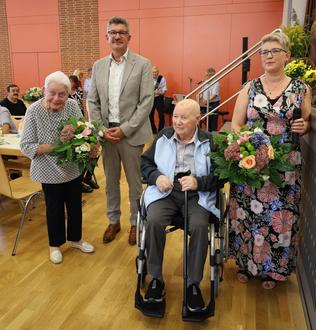 Höhepunkt des Programms war die Ehrung der Ältesten: Elisabeth Hoffmann, die erst vor kurzem das 100. Lebensjahr vollendete und Günter Alt, 94 Jahre, konnten sich über einen bunten Blumenstrauß freuen, überreicht von der stellvertretenden Ortsvorsteherin Evelyne Weishaar und Bürgermeister Markus Weber.