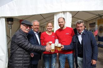 Am vergangenen Wochenende gratulierten Bürgermeister Hans-Joachim Neumeyer, Kreisbeigeordneter Dietmar Bonner (in Vertretung von Landrat Patrik Lauer) und Ortsvorsteher Bernd Schweitzer Kathrin und Marco Jochem sowie dem Team der Metzgerei Jochem zu dem schönen Jubiläum und wünschten weiterhin gute Geschäfte.