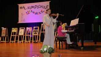 Musikalisch umrahmt wurde die Vernissage von Frau Bay und ihren Töchtern Elisha und Emely (beide Schülerinnen der Mal- und Kunstschule)