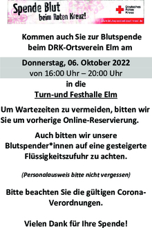 Auch bitten wir unsere Blutspender*innen auf eine gesteigerte Flüssigkeitszufuhr zu achten.