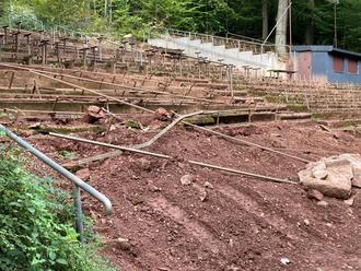 Dazu wurden die alten Zuschauerbänke und Tische bereits demontiert, im Folgenden wird der Hang mit Baggern stückweise abgetragen und eine Fläche für die neuen Ränge zu schaffen.
