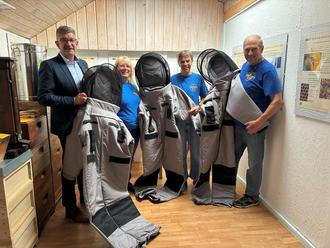 v.l.n.r.: Bürgermeister Markus Weber mit Claudia Hennen, Theda Wolfering und Günter Noh (MitgliederInnen des Bienenzuchtverein Schwalbach) bei der Übergabe der Anzüge
