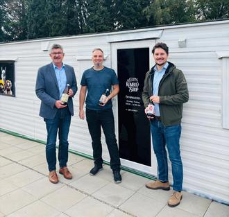Bürgermeister Markus Weber (l.) und Wirtschaftsförderer Christopher Klein (r.) gratulierten Marc Fischer (M.) zur Eröffnung seines neues Shops