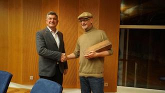 Bürgermeister Markus Weber dankte Andreas H. Drescher für die Lesung und überreichte ein kleines Präsent.