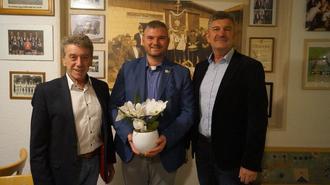 Bürgermeister Markus Weber (r.) besuchte gemeinsam mit Ortsvorsteher Bernd Schweitzer (l.) die Örtlichkeit, gratulierten dem Jungunternehmer Dominik Binder (m.) und wünschen ihm und dem gesamten Team viel Erfolg.