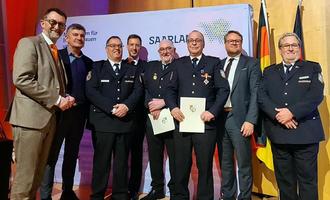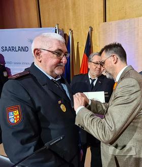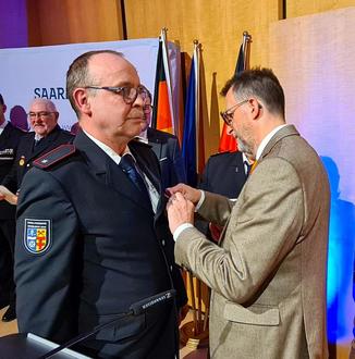 So wurde in feierlichem Rahmen das Saarländische Feuerwehr-Ehrenzeichen (Stufe III) für 45-jährige Dienstleistung in der Feuerwehr an