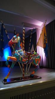 Als Gastgeschenk haben die Freunde aus Vern-sur-Seiche ein von einem Künstler gestaltetes und von Schulkindern wunderschön bemaltes Karussellpferd mitgebracht.