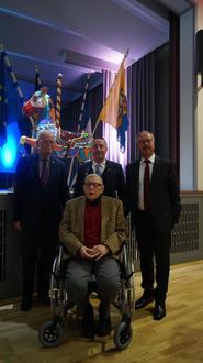 v.r.n.l. Bürgermeister Hans-Joachim Neumeyer, Bürgermeister Stéphane Labbé, Bürgermeister a.D. Eberhard Blaß, vorne Bürgermeister a.D. Georg Fleck.