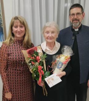 Bei dieser Gelegenheit wurde Hilde Braun als aktives Mitglied für ihre langjährigen Dienste im Verein geehrt und verabschiedet. Als Geschenk und auch als Andenken für die langjährige Treue und Verbundenheit zum Verein wurden ihr eine schöne Kerze und ein Rosenstrauß mit Glückwunschkarte überreicht.