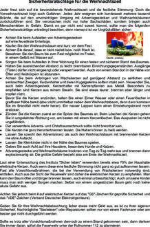 | - | Der verwendete Advents- und Christbaumschmuck sollte nicht brennbar sein. |
