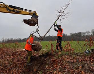 Das Versprechen wurde gehalten und diese Woche begann schließlich die Bepflanzung der Westseite der L140. Dort werden 55 Bäume und damit mehr als doppelt so viele Linden, wie vor der Sanierung, neu gepflanzt.