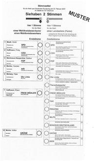 Jeder Wähler hat eine Erststimme und eine Zweitstimme.