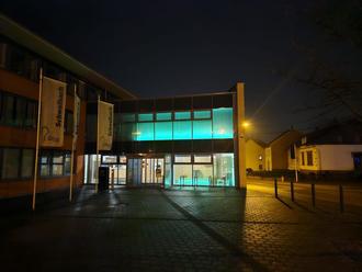 Auch die Gemeinde Schwalbach hat sich gerne an der Aktion beteiligt und den Ratssaal des Rathauses in Schwalbach grün leuchten lassen: