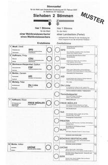 | Jeder Wähler hat eine Erststimme und eine Zweitstimme. | |