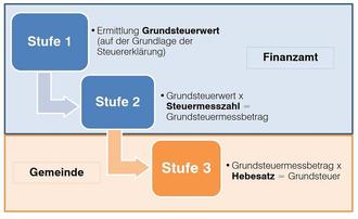 Die Grundsteuerermittlung basiert nach erfolgter Grundsteuererklärung durch den Steuerpflichtigen auf 3 Stufen: