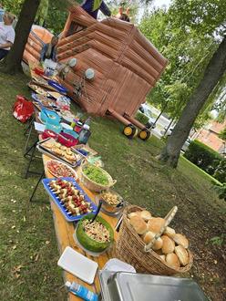 Der Fokus lag diesmal auf „entspannt gemeinschaftlich“. Im Vorfeld hatte man die Möglichkeit, über einen Link in einer Liste auf unserem WhatsApp-Sohnstedt-Kanal oder auch telefonisch anzugeben, was man an Essen und Getränken mitbringen möchte. Durch die Vielfalt der mitgebrachten Speisen - Salate, Kuchen, Snacks, Fingerfood - konnten wir ein abwechslungsreiches Buffet aufbauen.