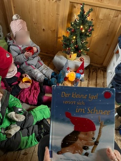 Natürlich gehört zu Weihnachten auch, dass man traditionell Plätzchen bäckt und Geschenke bastelt. So duftete es fast die ganze Zeit im Haus nach Plätzchen und Bratapfel, Schokolade und Kinderpunsch. Die Kornblumengruppe nahm ihren Kinderpunsch mit in den Bauwagen in unserem Garten. Während sie den genossen, wurden kuschelige Geschichten vorgelesen. In jeder Gruppe wurden Lebkuchenhäuser gebacken und nach und nach vernascht. Herr Röppischer besuchte die Mohnblumengruppe und hatte spannende Experimente im Gepäck. Bei den Gänseblümchen und Veilchen zog über den Dezember ein kleiner Wichtel ein, der allerlei Streiche spielte, aber sich natürlich auch immer auf eine schöne Weise für den Schabernack entschuldigte. Die Pusteblumen waren auch wie in den letzten Jahren zum Adventssingen in der Schule eingeladen. Herr Kunstmann vom Ingenieurbüro für Brand- und Explosionsschutz Kaulsdorf zeigte uns eindrucksvoll, wie ein Feuerlöscher funktioniert und erklärte uns viel Wissenswertes rund um das Thema Feuer. Die Löwenzähne hatten einen kleinen Weihnachtsbaum im Zimmer, welcher im Dezember mit vielen tollen Kugeln und gebastelten Sachen dekoriert wurde. Kleine Sterne und glitzernde Kringel fanden sich bald zwischen leuchtenden Lichtern wieder. Die Butterblumen fanden sich in der Vorweihnachtszeit in der Welt der Märchen wieder und machten es sich richtig gemütlich.