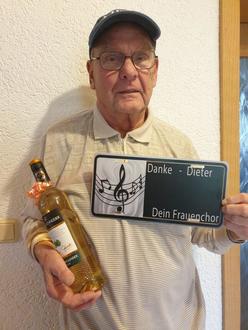 Dem Chorleiter wurden auch kleine Überraschungen in Form eines “Dankeschön-Schild“ für seinen Musikkeller und ein personalisiertes Base-Cap überreicht.