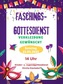 | 14.00 Uhr | Faschingsgottesdienst; |