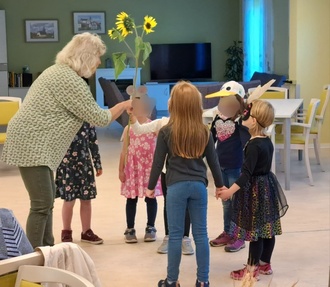 Am 26. September feierten wir das erste Herbstfest in unserer neuen Tagespflege. Nach dem Frühstück erhielten wir Besuch von den Vorschulkindern aus dem AWO-Kindergarten "Sonnenblume" in Kaulsdorf.