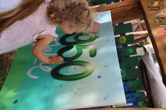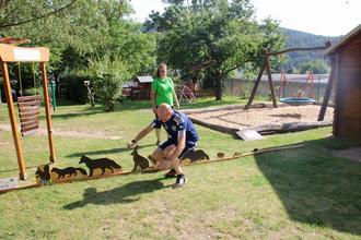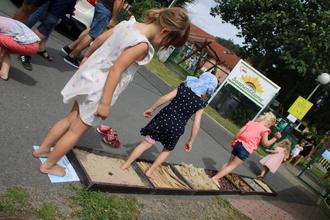 Carolin Arnoldt war eine fleißige Helferin, die im Außengelände einen Barfußpfad, ein Waldpuzzele & einen Waldtiersprungpfad für die Besucher angeboten hat.