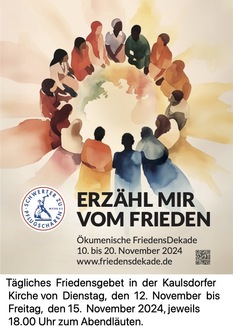 | jeweils 18.00 Uhr | zum Abendläuten, Friedensgebet in der Friedensdekade 2024 |