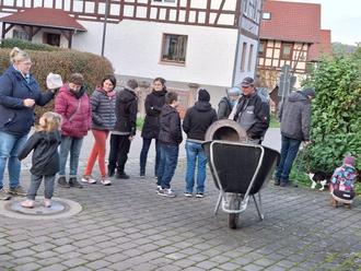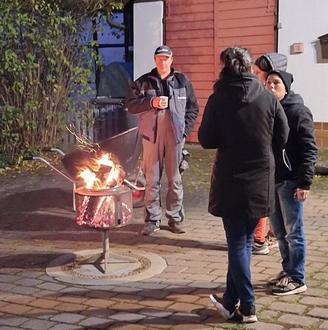 Dort bekam jedes Kind eine kleine Überraschung. Danach gab es Wiener Würstchen und natürlich ein kleines Feuer, wo Knüppelkuchen gebacken werden konnte.