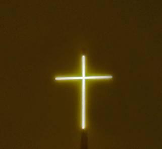 Ein helles Kreuz leuchtet jetzt in der Vorweihnachtszeit ins Tal.