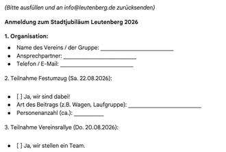 Ein Stadtfest lebt vom Mitmachen. Die Stadtverwaltung ruft alle Vereine und Gruppen - auch überregional - dazu auf, den großen Festumzug am Samstag aktiv mitzugestalten. Zudem werden noch Teams für die Vereinsrallye am Donnerstag gesucht. Ein besonderes Highlight wird die historische Sonderausgabe des „Herolds“ sein, die bereits vor dem Fest als Sammlerstück erhältlich sein wird.