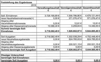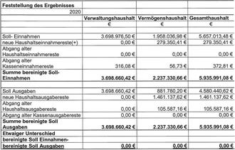 Es kam zu folgendem Ergebnis der Jahresrechnung