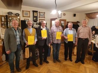 In diesem Jahr wurden Hans-Ulrich Gruber für 25 Jahre, Reinhard Völkner für 30 Jahre sowie Frank Rochier und Dieter Becker für jeweils 40 Jahre aktives Singen in unserem Chor geehrt.