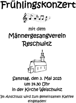 Frühlingskonzert mit dem Reschwitzer Männerchor und anschließendem Kaffeetrinken;