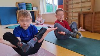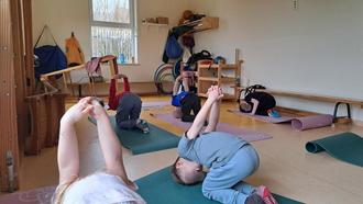 Kinderyoga ist eine abgewandelte Form des klassischen Yoga, die speziell an die Bedürfnisse von Kindern angepasst ist. Es beinhaltet einfache Yoga-Positionen (Asanas) Atemübungen und Entspannungstechniken. Oft integriert man Geschichten, Musik und spielerische Elemente (z.B. Karten, Würfelspiele etc.), um die Aufmerksamkeit und die Fantasie der Kinder zu fördern. So erlernten die Kinder beispielsweise die Bewegungsabfolge des Sonnengrußes als wöchentliches Ritual. Dabei darf eine Kinderyoga-Stunde auch mal wild, lebendig und laut sein. Spaß und Freude an der Bewegung steht beim Kinderyoga im Vordergrund.