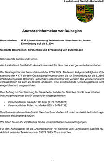 das Landratsamt Saalfeld-Rudolstadt informiert Sie über das oben genannte Bauvorhaben.
