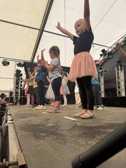 Ein Höhepunkt war der gemeinsame Auftritt unserer Kinder auf der Kaulsdorfer Kirmes. Mit viel Eifer und Begeisterung hatten die Kinder der Größeren Gruppen in den Wochen zuvor Tänze einstudiert und viel geübt. Auf der Bühne war die Aufregung zwar groß, doch die Kinder meisterten ihren Auftritt mit Bravour. Mit strahlenden Gesichtern begeisterten sie das Publikum. Eltern, Großeltern und Besucher der Kirmes spendeten großen Applaus und so wurde der Auftritt zu einem besonderen Erlebnis für die ganze Gemeinschaft.