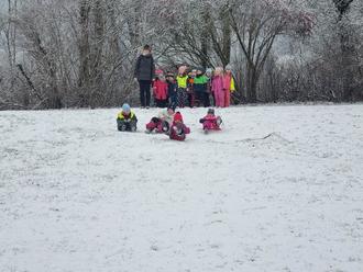 Wie toll, dass es zum Abschluss der Woche am Freitag doch geschneit hat. Denn so konnten die Kinder auch draußen Schneemänner bauen und eine Schneeballschlacht machen. Zu den jüngeren Spinnenkindern kam der Schnee in den Raum und sie betasteten und formten ihn ausdauernd. Unsere Taubengruppe schnappte sich die Schneerutscher und ging ins Neubaugebiet zum Rodeln. Blitzschnell rutschten sie den Hügel hinunter und hatten eine Menge Spaß dabei.
