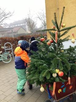 Im Dezember dachten unsere Kinder wie in jedem Jahr an die Tiere des Waldes. Auch sie sollten ein schönes Weihnachtsfest erleben. Und so baten wir unsere Familien um Obst- und Gemüsespenden, mit denen wir ein Weihnachtsbäumchen schmückten.