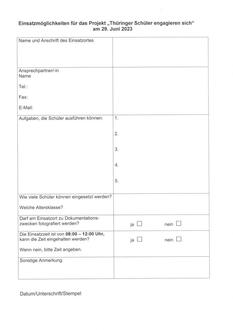 Die Gestaltung der Einsatzstellen obliegt den Organisatoren vor Ort und wird mit der Stadtverwaltung Kahla abgestimmt, die sich um die Vermittlung der Schüler kümmert.