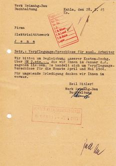 Selbst Zwangsarbeiter, die von der REIMAHG abgestellt wurden, waren beim Jenaer Elektrizitätswerk im Einsatz. Die Verpflegungskosten musste die Jenaer Firma übernehmen.