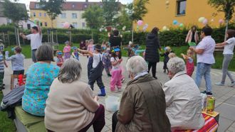 Eine fröhliche Kindertagsfeier erlebten die Kinder der DRK - Kita BUNTE WELT gemeinsam mit ihrem lieben Besuch der Senioren aus der Diakonie Tagespflege.