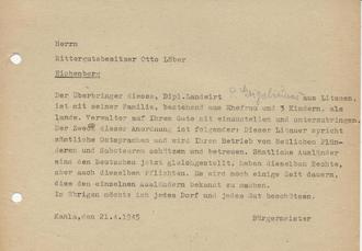 Am 17. April 1945 wurde von der Kahlaer Bürgermeister Budina an Herrn Kiendl in Löbschütz den Auftrag gegeben, um in Löbschütz eine eigene Stadtwacht aufzustellen.