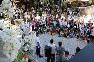 Nach der Vorstellung des Leitbildes begann das Schulfest, für das alle Klassen eigene Stände vorbereitet hatten - jeweils mit einem Bezug zur mittelalterlichen Geschichte der Burg. „Handwerkliches und Sportliches war dabei ebenso vertreten wie Kreatives, Kurioses und Kulinarisches. Genau so, wie wir uns Bildung auch künftig als ganzheitliches Erlebnis für alle an unserer Schule wünschen“, sagt Janine Hoche. Auch Schülersprecher Miklas Eberlein ist mit dem Ergebnis sehr zufrieden. „Wir sind sehr dankbar, dass wir das Leitbild als Schüler mitentwickeln konnten. Unsere Schulgemeinschaft ist ein Paradebeispiel für gelebte Partizipation und das Leitbild verfestigt jetzt die Werte, die wir an der Schule schon seit Jahren leben.“