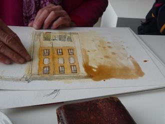 Unterwegs in Kahla und Umgebung wurden nicht nur Studien für Bilder betrieben, um diese dann im Atelier zu komponieren, sondern die Vier fotografierten, zeichneten und lauschten den Geräuschen unserer Stadt.