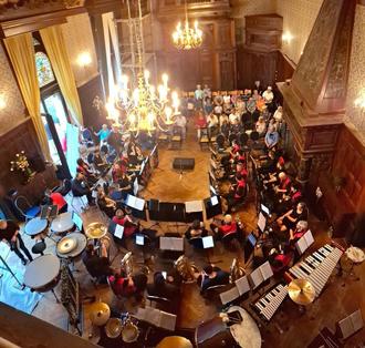 Eigentlich sollte das Konzert der renommierter Jenaer Brassband BLECHKLANG ein Picknickkonzert im Schlosspark werden - aber das Aufziehen eines schweren Gewitters machte dem Förderverein einen Strich durch die Rechnung. So musste in letzter Minute der Umzug in den Festsaal erfolgen, wo das Konzert dann aber grandios über die Bühne ging. Mit berühmten Filmmusiken, beispielsweise „Wild West! The Best of Ennio Moricone“ ist und berührenden Klängen aus „Harry Potter und der Stein der Weisen“, begeisterten die Jenaer Musiker das Publikum, das mit Standing Ovations dankte.