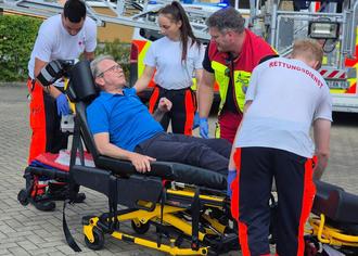 Am 2. Juli machte die diesjährige #RespektdenRettern-Tour Station im thüringischen Kahla. Bei Temperaturen jenseits der 37 Grad besuchte Thüringens Innenminister Georg Maier gemeinsam mit Landrat Johann Waschnewski den DRK-Rettungsdienst in Kahla und die örtliche Feuerwehr - und begab sich dabei selbst in eine brenzlige Situation.