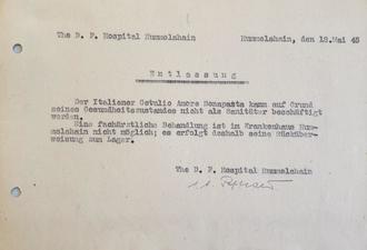 Ende 1944 kommt er als Sanitäter ins Betriebskrankenhaus nach Hummelshain. Nach der Befreiung, Mitte April 1945, wird das Betriebskrankenhaus zum „Displaced Persons“ Krankenhaus in dem Getulio weiter arbeitet bis er selbst erkrankt. Aus unerklärlichen Gründen wird er am 18. Mai 1945 aus dem „DP“- Krankenhaus entlassen, da für ihn eine fachärztliche Behandlung nicht möglich ist. Er kommt zurück in sein Lager, wo er bis zu seiner Evakuierung in die Heimat verbleibt.